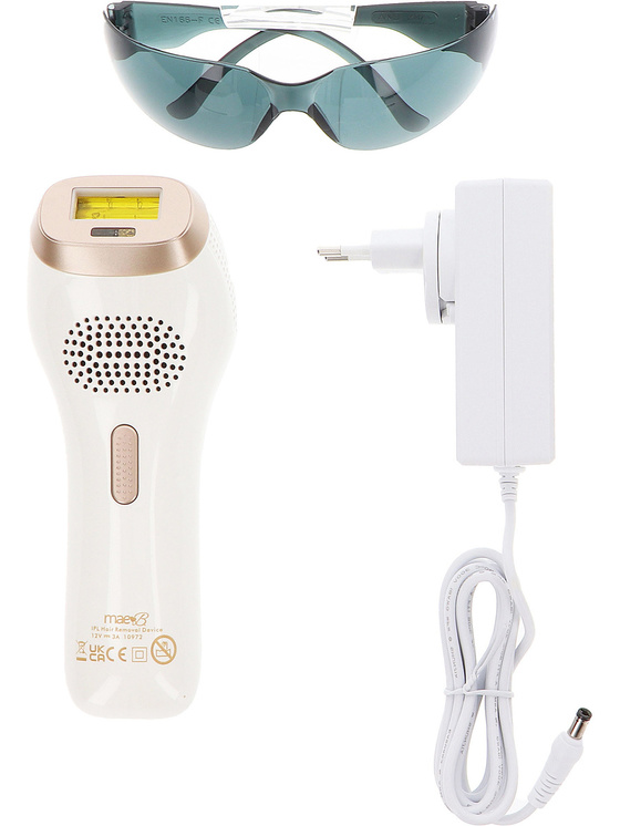 Mae B IPL Hair Removal Device är en kompakt enhet för hemmabruk som använder IPL-teknologi (intensivt pulserande ljus) för att effektivt reducera hårväxt över tid — på ben, armar, under armar, bikiniområde och ansikte. Den riktar ljusenergi mot hårsäckarna, vilket stör hårsäckscykeln och får håren att växa långsammare eller inte alls. Med 5 justerbara ljusnivåer och inbyggd hudtonssensor är den utformad för att anpassa behandlingen efter både hudtyp och hårfärg, vilket gör behandlingen både säkrare och mer komfortabel. Enheten levereras med skyddsglasögon och är ett bekvämt alternativ till rakning, vaxning eller salongsbehandling — perfekt för dig som vill ha silkeslen hud hemma med långvariga resultat.