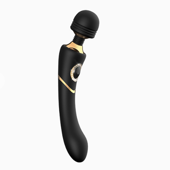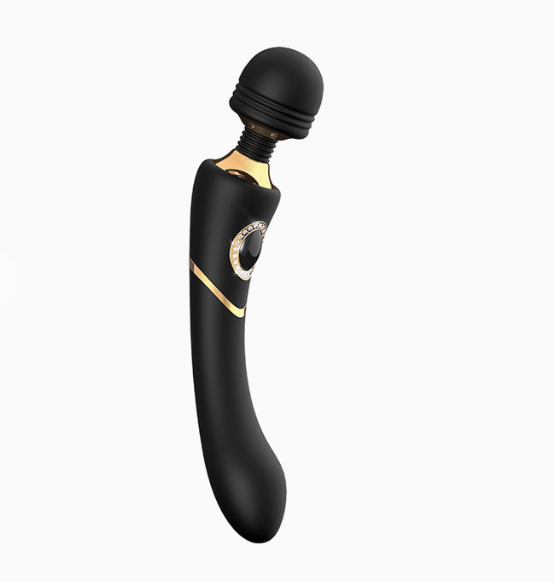 Monica från DreamToys Prestige – en elegant magic wand med svart siluett och guldaccenter. Med 7 vibrationer och 3 hastigheter, uppladdningsbar via magnetisk USB, flexibel nacke och IPX7-klassad vattentäthet levererar den kraftfull och stilren stimulans.