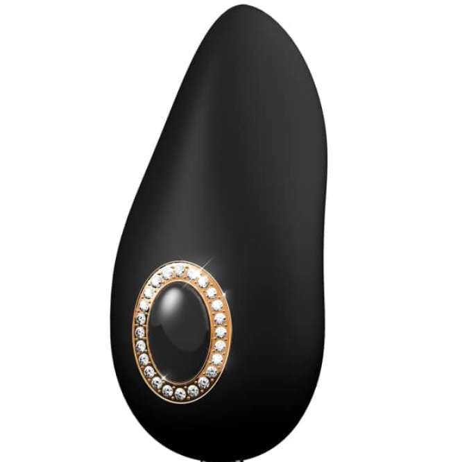 Prestige Elena – en elegant klitorisvibrator i svart silikon med gulddetaljer. Utrustad med 7 vibrationslägen och 3 hastigheter, USB-uppladdningsbar och helt vattentät, levererar den kraftfull men följsam stimulans med stil och finess.